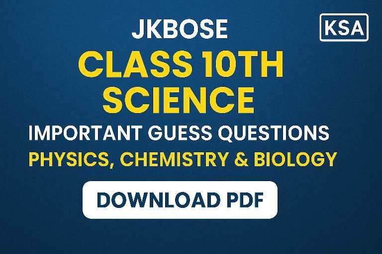 To simplify your preparation, Kashmir Student Alerts (KSA) brings you a comprehensive list of Class 10th Science Important Guess Questions 2025, carefully curated as per the JKBOSE syllabus and latest board exam trends.